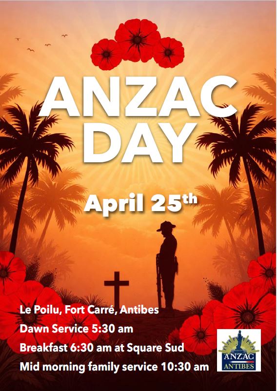 The annual ANZAC Day commemoration has taken place in Antibes on the Côte d’Azur due to the number of Antipodeans living and working around there for some time.